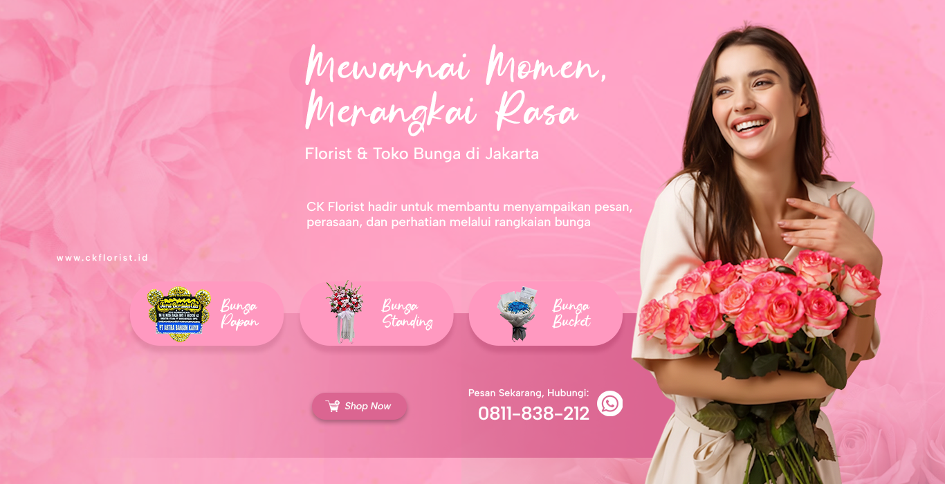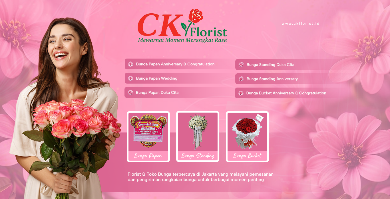 CK Florist adalah Florist & Toko Bunga terpercaya di Jakarta yang melayani pemesanan dan pengiriman rangkaian bunga untuk berbagai momen penting, baik personal maupun korporat. Dengan pengalaman dan dedikasi tinggi dalam dunia floristry, CK Florist hadir untuk membantu menyampaikan pesan, perasaan, dan perhatian melalui rangkaian bunga yang dirancang dengan estetika elegan dan penuh makna.